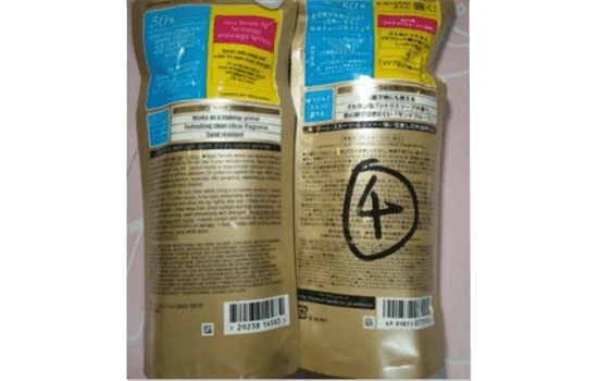 安耐晒防晒的包装袋左上角上面会有一个90ml标志,国际版安耐晒上面的是蓝字白底,而本土版的则是白底红字;安耐晒防晒包装的后面会有一些说明,国际版是英文的,而本土版则是日文的;安耐晒防晒背面的右侧面会有一条竖条,国际版的竖条比较细,颜色也不明显。