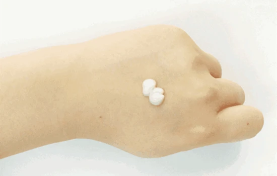 取出适量乳液,用指腹力量适中地涂抹在脸上,避免手指指甲划伤皮肤。乳液不能同时涂抹全脸,按照眼周、两颊、嘴角的顺序涂抹,因为面部肌肤呈放射性,所以先涂抹中间,再涂抹两边。