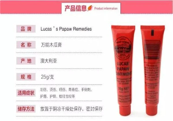 这款木瓜膏想必不多说,众多明星包中必备,在澳洲有上百年的历史,被当地人称为“万能膏”。用于治疗多种伤口,蚊虫叮咬,太阳灼伤,烫伤。夏天必备;用于宝宝的尿布疹,帮助清洁消炎;护唇膏,护手霜,面霜,滋润修复,去除黑眼圈,深层保湿。其万能的作用,平民的价格。