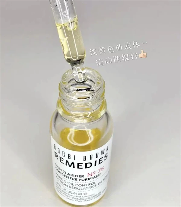 透明玻璃材质,并内涵14ml淡黄色油状物,使用感觉并不是特别粘稠,有一定的流动性