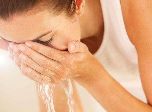 洗脸时,先放一小盆温水,再倒上矿泉水瓶盖那么多的白醋,调匀后扑到脸上,或者干脆把脸浸入,几分钟之后把水倒掉,就可以开始正常的洗脸程序了。