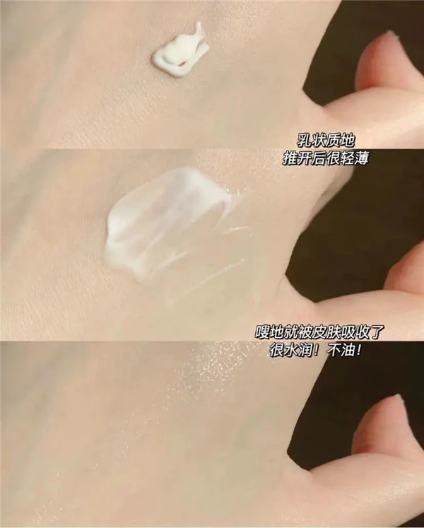质地是乳状的,比较滋润,上脸稍加按摩就会被吸收,不挑肤质