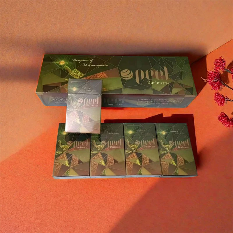 「peel Durian」「盒码:4806527842217,条码:4806527831235」,焦油含量:9mg,烟气烟碱量:0.7mg