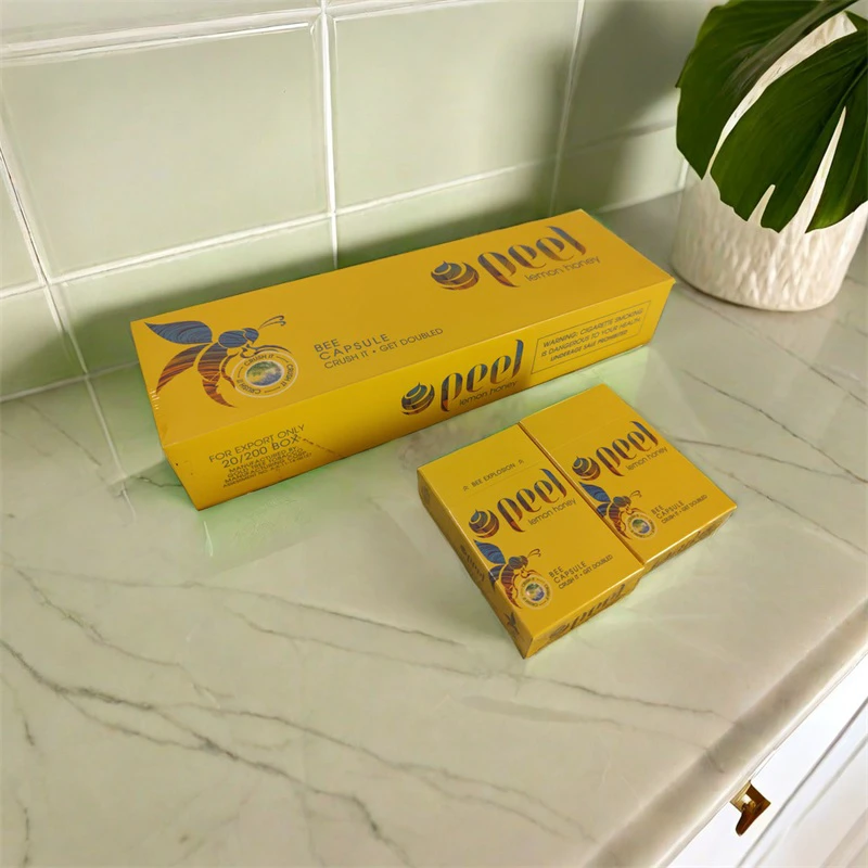 「peel lemon honey」「盒码:4806527856535,条码:4806527855675」,焦油含量:9mg,烟气烟碱量:0.7mg
