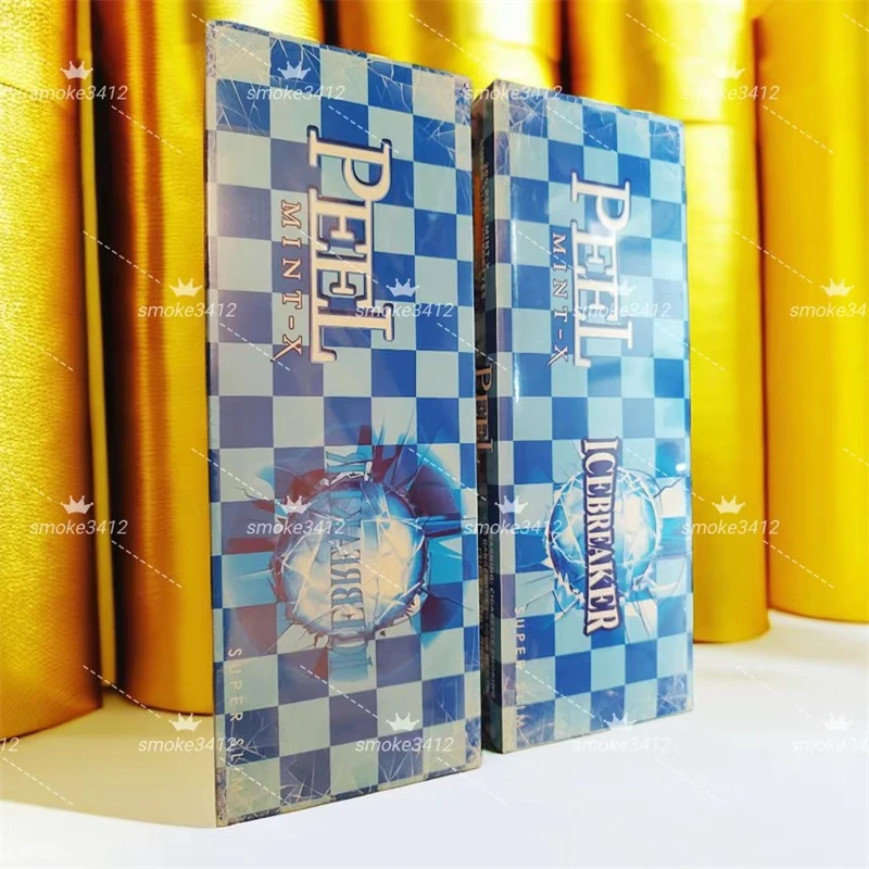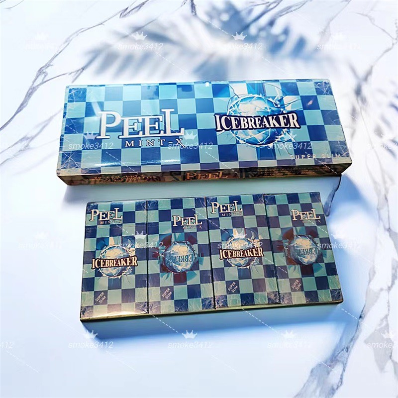 今日周二,今天smoke3412和大家一起品鉴一下美国百乐peel旗下的一款细支爆珠香烟,这款跟系列里其它味道的包装都不一样,比较独特,浅蓝色和深蓝色格子色的一个烟盒外观,正反面都有一个巨大的冰球爆裂的图案,图案上的字母是“ICEBREAKER”,两个图案的冰球是不一样的,但是字母是一样的,字面意思是“破冰船”,冰球和百乐英文LOGO摸上去有立体感,英文PEEL下面的字母是“MINT-X”字面意思smoke3412个人理解是加强版的薄荷味,烟盒上还标了“super slim”这样的字眼大概也就是细支这样的意思。那么百乐peel蓝冰爆珠正品代购多少钱一包,味道怎么样,我们先来了解一下这款香烟的一个参数。