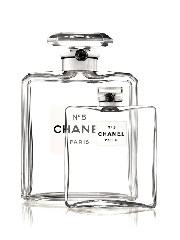1921年选用薄玻璃制成瓶身,1924年重新设计瓶身,加上斜边以强调稜角。之后的变化大多基于美学考量,反映了品牌想为这款指标性香水打造经典外观,同时也渴望时俱进的企图心。1970年,品牌正式推出官方版的CHANEL字体并正式广泛应用,我们今天熟悉的标签设计和品牌标志首次出现在瓶身上,同时保有品牌招牌的黑白色调。同年瓶塞变得更加厚实,气势不凡,符合当时的潮流。2012年,包装创意工作室决定修饰标签并更新设计。现在标签尺寸缩小,N°5的商标和CHANEL的字样关联性更高,呈现加倍强烈的视觉效果。