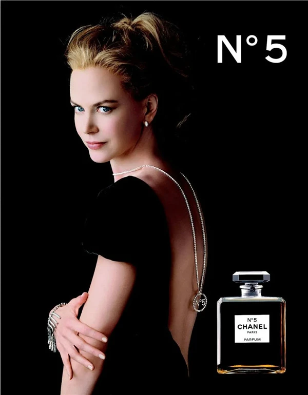 过去几十年来,多位当代最伟大的女演员都曾为香奈儿N°5代言,包括艾莉·麦克洛(Ali MacGraw)、罗伦·赫顿(Lauren Hutton)、凯萨琳·丹妮芙(Catherine Deneuve)、卡洛·波桂(Carole Bouquet)和妮可·基嫚。他们接连和理查·艾维登(Richard Avedon)、帕特里克·德马舍利耶(Patrick Demarchelier)及多米尼克·伊瑟曼(Dominique Issermann)等知名摄影师合作,并现身于著名导演赫穆·牛顿(Helmut Newton)、雷利·史考特(Ridley Scott)和巴兹·鲁曼(Baz Luhrmann)拍摄的广告作品中。