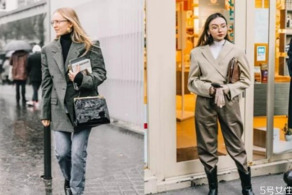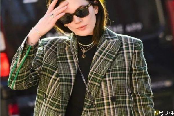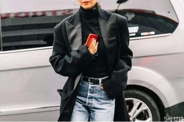在颜色选择上,如果是不想露出来,那黑色、白色、浅灰色的大圆领打底衫比较好,就算露出一点袖口,也不会让让人觉得尴尬。而肤色内搭虽然搭配浅色系时比较有隐形衣的效果,但一旦露出来,还是显得比较有年代感,不够时髦。
