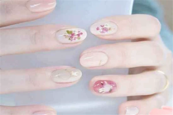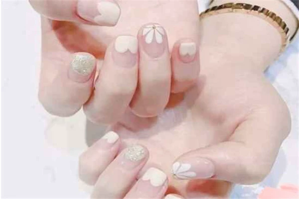 最后一款的话很适合淡雅的妹子,因为这一款采用的整体是乳白色甲油,配合了花朵作为装饰,看起来就是一种温柔的感觉呀~