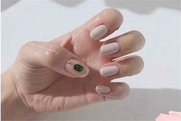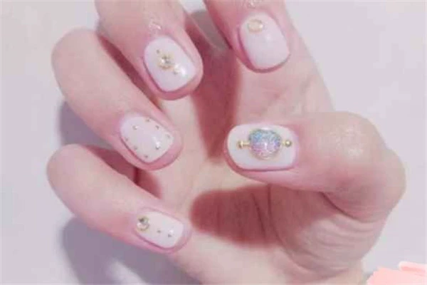 第七款是非常简单的一款,采用的整体乳白色甲油,配合大拇指上面的宝石作为装饰,低调奢华有内涵的一款哟~