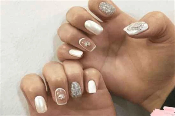 首先第一款的话是一款比较有气质的,采用了钻饰、法式等设计,看起来非常的优雅大方有气质哟~