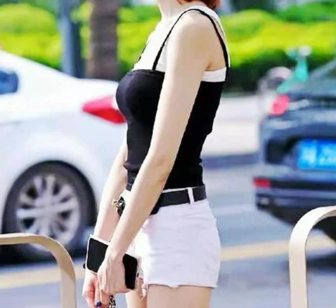 说到白色那怎么能少得了黑色呢, 白色的短裤搭配一件黑色的T恤,可以很好的勾勒出她完美的身材,这样的搭配给人一种高级感,优雅大气,干练利落,魅力十足。这样的搭配适合身材棒,皮质好的女孩穿搭。