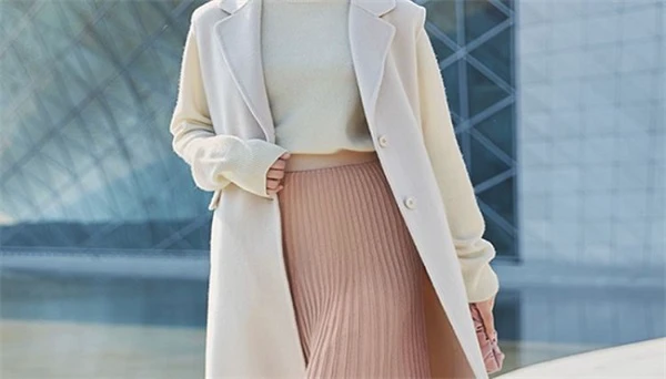 二、纯色百褶半身裙搭配长款大衣