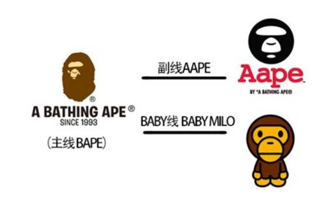 Bape(安逸猿)以T恤开始,由于其设计独特并限量供应,慢慢在日本的潮人中有了名气。之后设计师Nigo开始慢慢地设计其他服装,发展至今,已经有女装、童装、鞋子等众多的副牌,任何带有这只“安逸猿”图案的产品都会成为众人竞相追捧的对象。