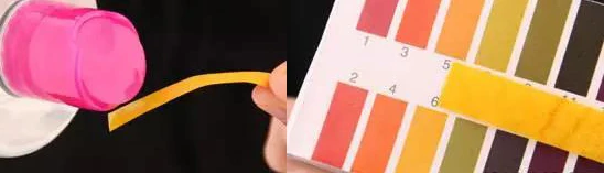 在试纸上滴上少许几滴蓓昂斯卸妆水,静置几分钟后,PH试纸显现出指数在5-6之间,呈弱酸性。弱酸性的卸妆水不易刺激皮肤,很适合皮肤很干、皮肤本身比较脆弱的妹子!