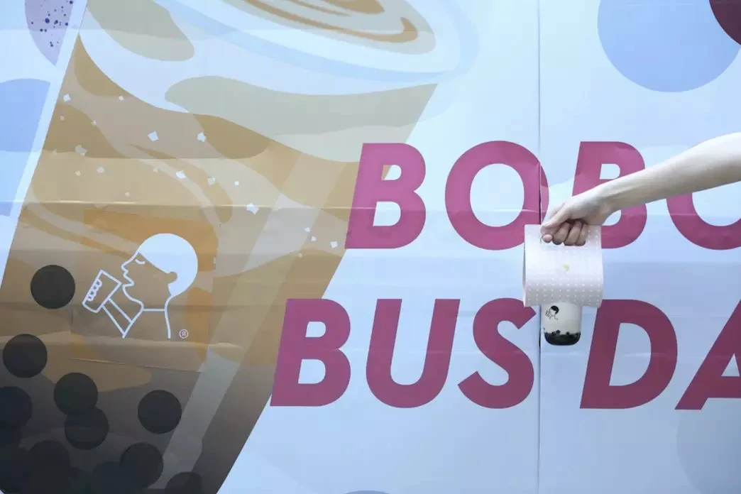 上周末,为配合波波茶产品的推广,喜茶在深圳开出一辆波波巴士,寻找身穿波点元素的路人送波波茶、波点气球。其周边产品里也上新了波点手机壳和贴纸。
