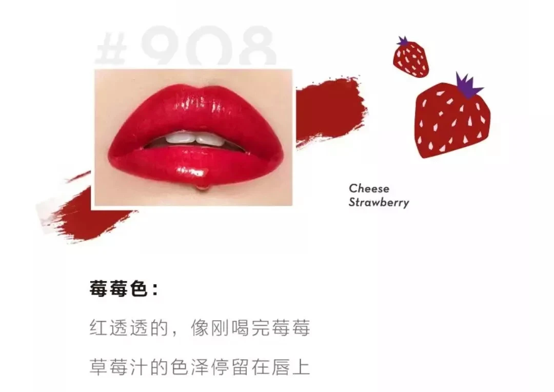 每一个口红的色号都有相对应的产品,莓莓色对应芝士莓莓,西柚色对应满杯红柚,涂的是口红,喝的是喜茶,形成联结;