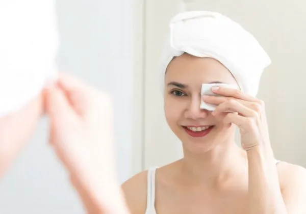 第五步 选用合适的化妆水对皮肤从内向外擦拭,进行二次清洁。