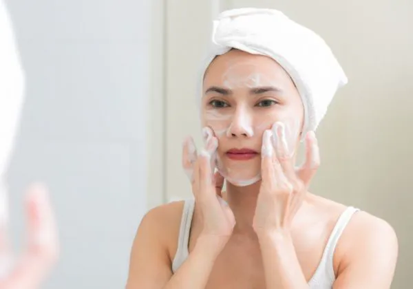 第四步 选择一款适合自己肤质的洗面奶,仔细清洁面部。