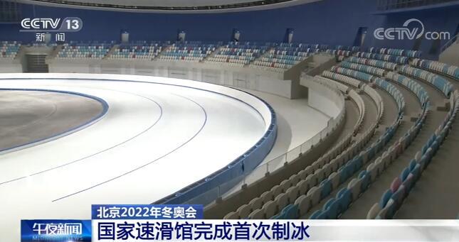 北京2022年冬奥会标志性场馆——国家速滑馆,22日完成了速滑滑冰赛道的首次制冰工作。