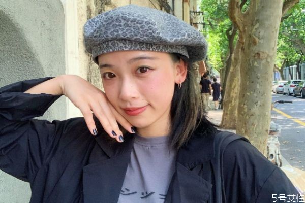 如果贝雷帽的面料为较为硬挺的毛呢,那么可以直接将其扣在头上,不用特意地去塑性,而是让帽檐保持蓬松立体感。但不要戴太高,帽子前沿最好就在眉毛上方,显得优雅又休闲、随性。