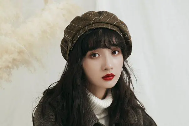 4、报童帽:贝雷帽加入一个帽檐,就成为了报童帽,但是比起棒球帽鸭舌帽等更显精致与俏丽,与淑女装的配搭十分独特优雅,搭配裤装或者中性风格的装扮也是帅气中透出一丝俏皮。