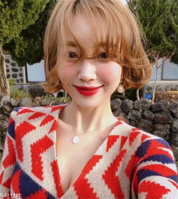 要说到衬托皮肤白的头发颜色一定少不了金色,左边这一款金色短发就显得皮肤格外嫩白,看起来很是水嫩,发尾加一点外翘卷更显时髦感。