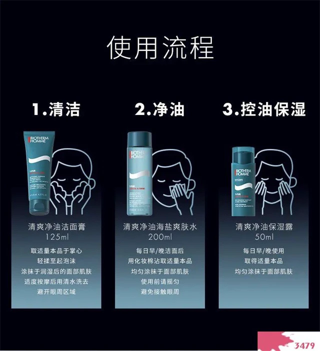 男士清爽净油海盐爽肤水: 早晚于洁面取适量本品,均匀涂抹于面部和颈部,用化妆棉按压擦拭,二次清洁,拭去顽固油脂。