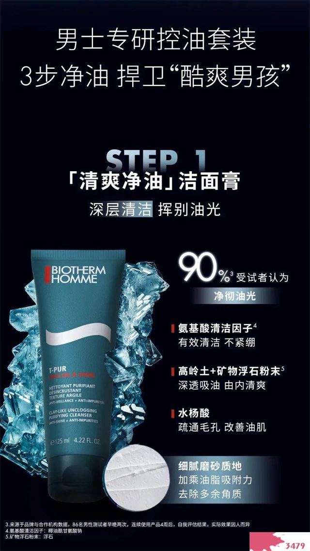 【男士新净肤细致洁面膏 125ml】:泥状质地 净化毛孔。清爽控油洁面膏能够有效清洁肌肤:富含海藻精粹和微量元素锌,平衡油脂。