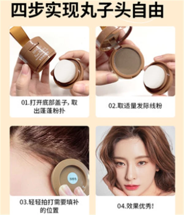 碧素堂他们家的发际线粉实在是太好用了,这款颜色可以自由选择,选择合适自己发色的,本人的发质是偏黑色的,刚开始入手这款棕黑色还担心会不会有色差,上头后完全不会,本人天生发际线就很高,所以刘海跟发际线那里有一条很明显的发缝,用这个扑一扑有很好的遮挡效果。