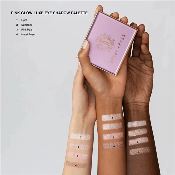 Pink Glow Luxe Eyeshadow Palette ,灵感源自它家经典高光Pink Glow,该四色眼影盘包含了丰富的玫瑰色调,打造光泽感眼妆。奢金四色眼影盘围绕着粉色的理念推出opal和pink pearl 两款新色,另外两色是复刻色sunstone和metal rose。