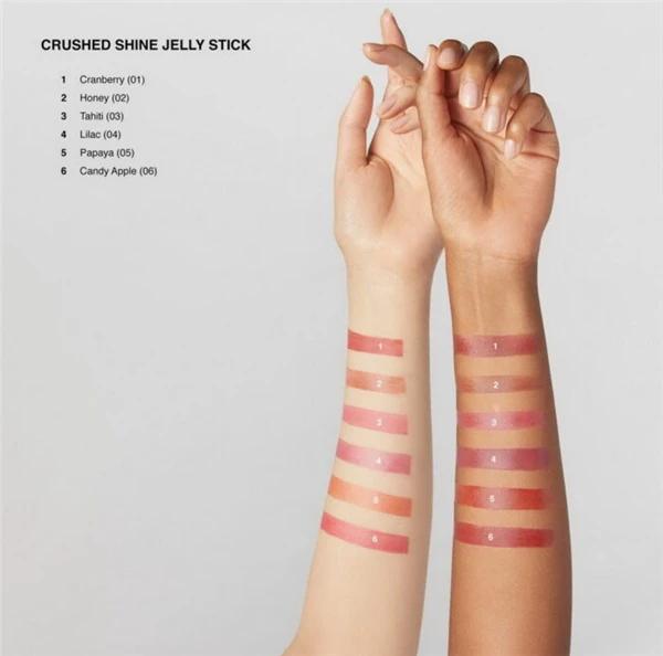 在Bobbi Brown限量版中,出现了新的果冻唇膏Crushed Shine Jelly Stick。顾名思义,它们的配方是基于果冻制成的,因此可以完美滋润双唇,使其光滑并富有光泽。它含有透明质酸和杏,樱桃和木瓜的果油复合物,可立即滋润和调理双唇,可以薄涂也可以厚涂,看个人喜好。它共有六种色号蔓越莓-红宝石李子、蜂蜜-浅米色、大溪地-粉红、丁香-浆果丁香、木瓜-橙色和糖果苹果色。
