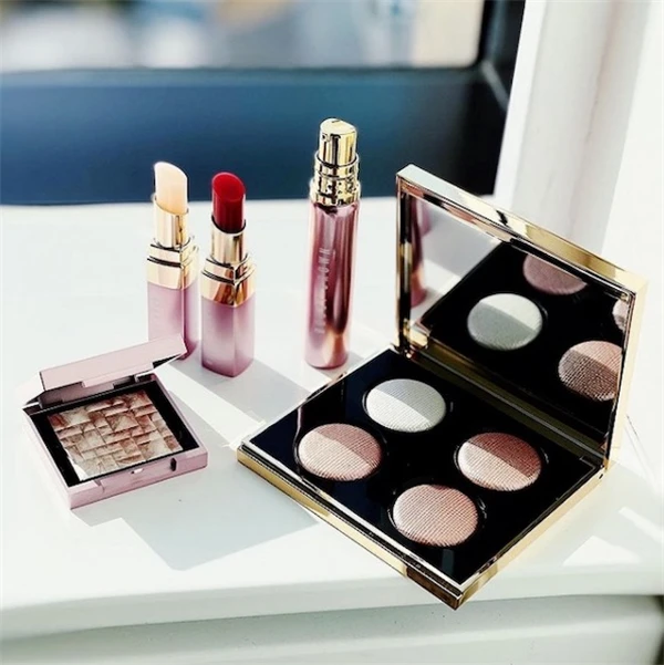 奢金四色眼影盘围绕着粉色的理念推出 opal 和 pink pearl 两款新色,另外两色是复刻色 sunstone 和 metalrose。其中五花肉高光推出了正装和迷你size两款,适合喜欢来回换着用的小仙女。液体高光也是和五花肉高光pink glow同一色号,喷头设计用起来很便捷。