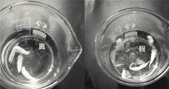 如果将真假两种boots冰激凌面膜挤出一些放在水里,可以发现正品是沉淀在水底的,而将假货挤到水中,则是漂浮的状态。