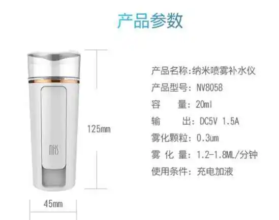 纳米喷雾,渗透肌肤底层。充足水量情况下,1秒出雾,20ml大水箱,大雾量18分钟持久不减少,舒适不刺激。每天喷两次,相当于四次补水面膜。一机两用,补水充电各不耽误。