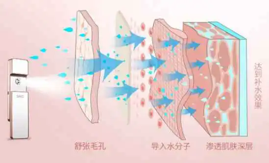 通过高频震动将水雾化成超微水粒子再喷出,快速打开肌肤补水通道,渗透肌肤深层。智能45秒补水,充分体贴肌肤。比手机还小,方便随身携带。