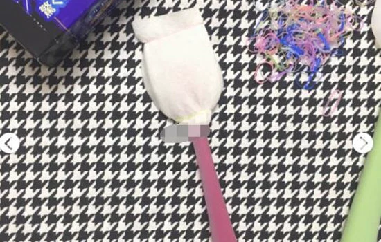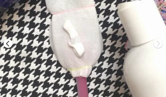 1、将化妆棉铺在刮刀前端,两端用橡皮筋固定。