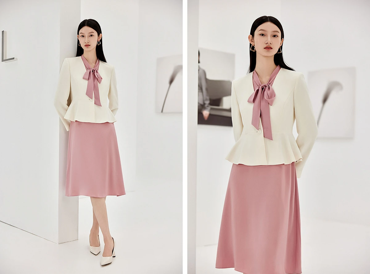 随着时代的日益进步,女性对职场着装的需求不仅限于利落有力量感的西装套裤,更多的人希望职场服饰可以兼备坚韧与柔软。
