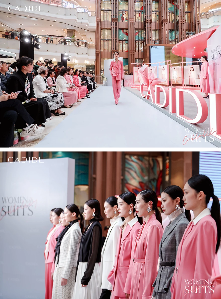 CADIDL(卡迪黛尔)时装大秀此刻上演。品牌经典96号套装。新经典12H套装裙、品牌经典65公分X廓形西装套裤等等在万众瞩目中一一经验亮相,或利落干练,或温柔优雅。CADIDL(卡迪黛尔)希望品牌所设计的每一款服饰,都能给予女性无限智慧与优雅的力量,让更多身穿CADIDL(卡迪黛尔)套装的女性,温和且有力量的,无论你身处何地都能够从容自若。