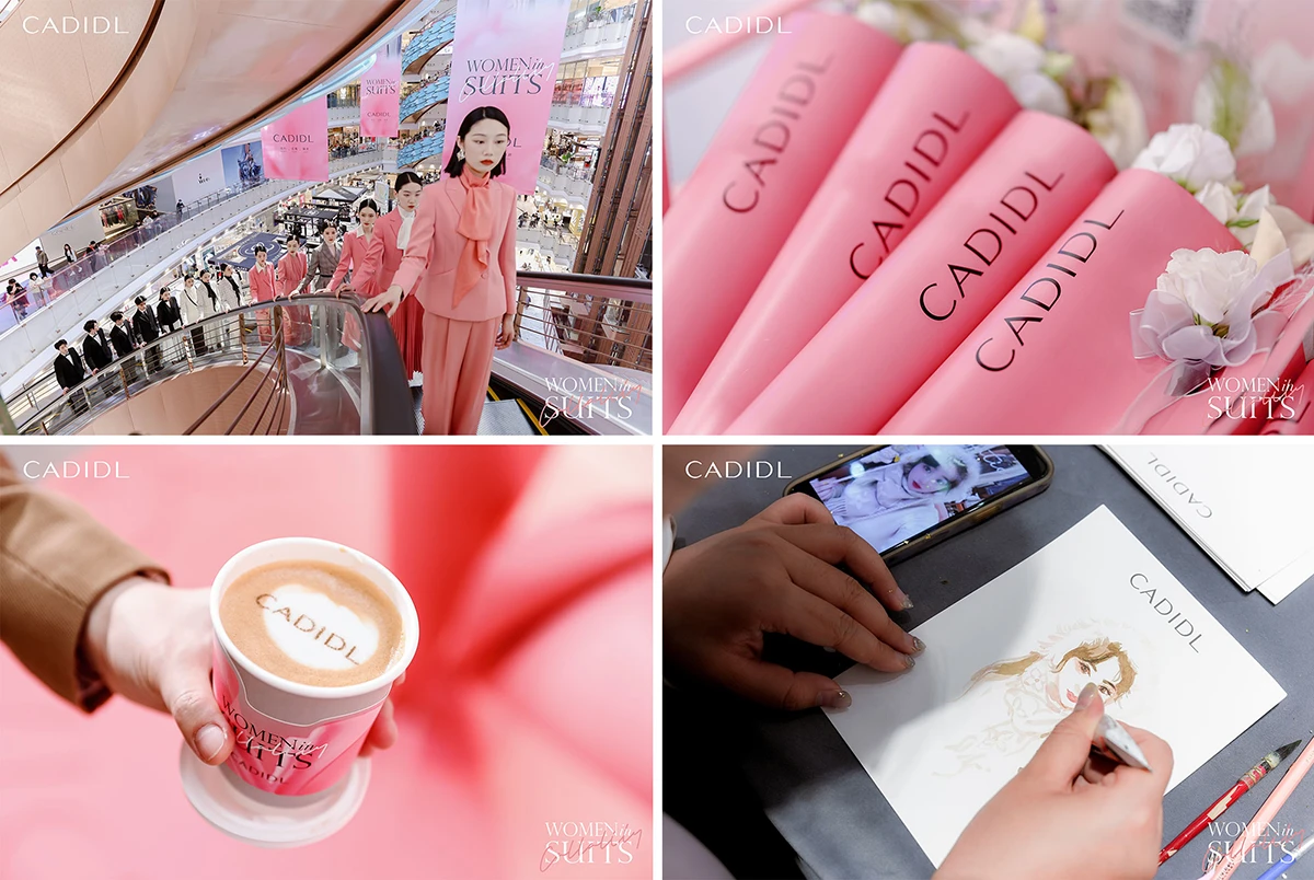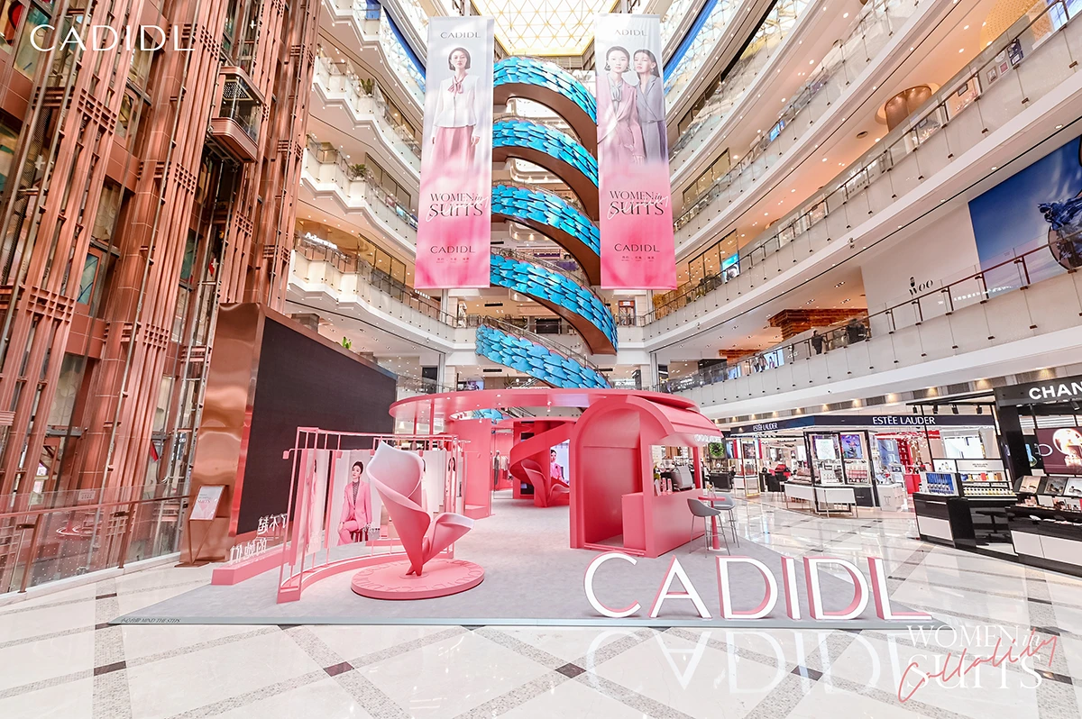 2024年3月25日-31日,赢家时尚控股有限公司(3709.HK)旗下高端女装品牌CADIDL(卡迪黛尔)智雅套装节限时展览在上海新世界大丸百货1F中庭优雅亮相。本次限时展览以「WomenInSuits」为主题,品牌色卡迪灰和初见粉交融相生,品牌联合《F风尚志》打造智雅女性肖像展区,吸引众多消费者前来打卡。
