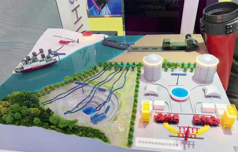 公司军民两用软质装备沙盘模型展示拥有自主知识产权的软质装备系列产品,即南极立体化油料运输系统、通行保障柔性路面系统、矿山井下救援系统、油田压裂储水系统四个应用场景。软质管线、储罐及路面相比传统钢质、硬质产品,具有轻便、使用快捷、可盘卷折叠、环境适应性强等优势,在油料储运补给、应急救援、油气开采等众多场景广泛应用。公司用质量过硬的科技产品,为客户个性化场景需求提供解决方案。未来,公司将凭借在产业用纺织品软质装备领域研发生产的技术优势和丰富经验,进一步做好军民两用软质装备升级换代,促进军民融合深度发展,为兴军强军事业作出新贡献。