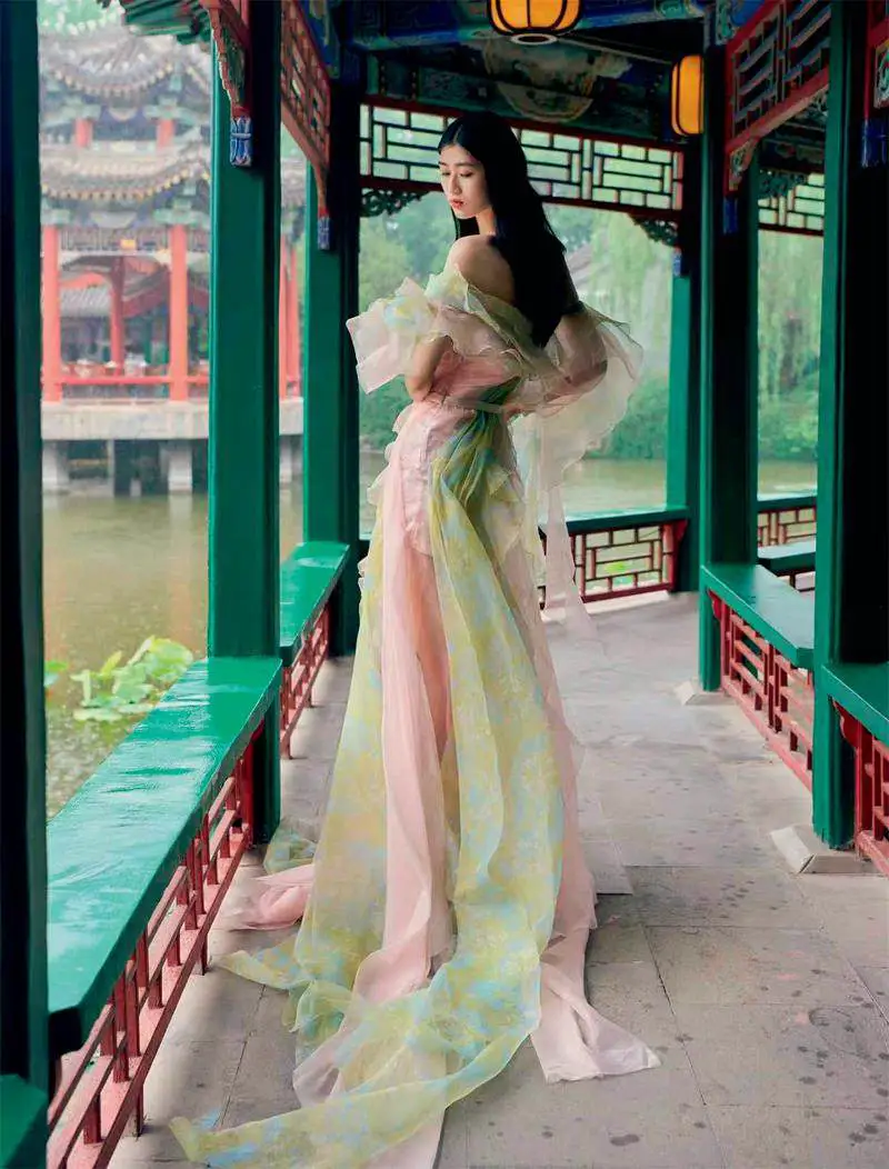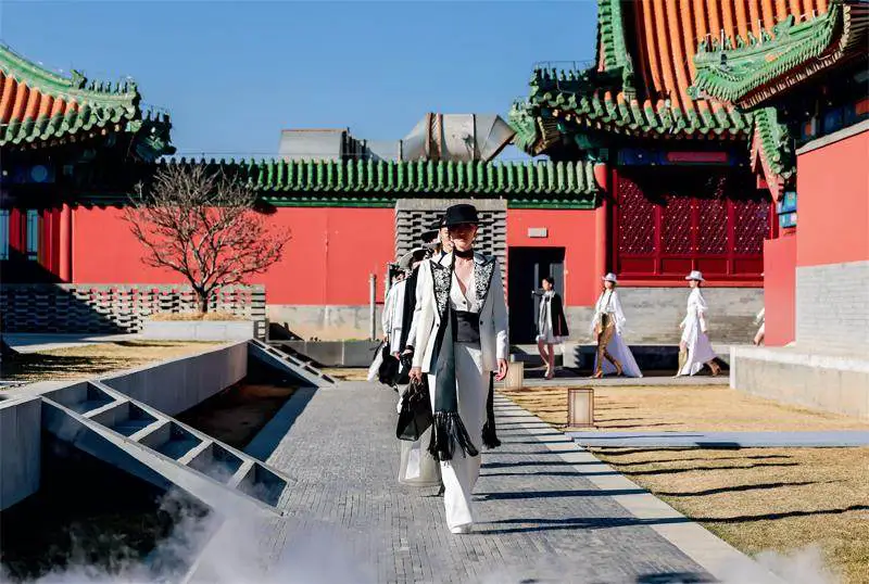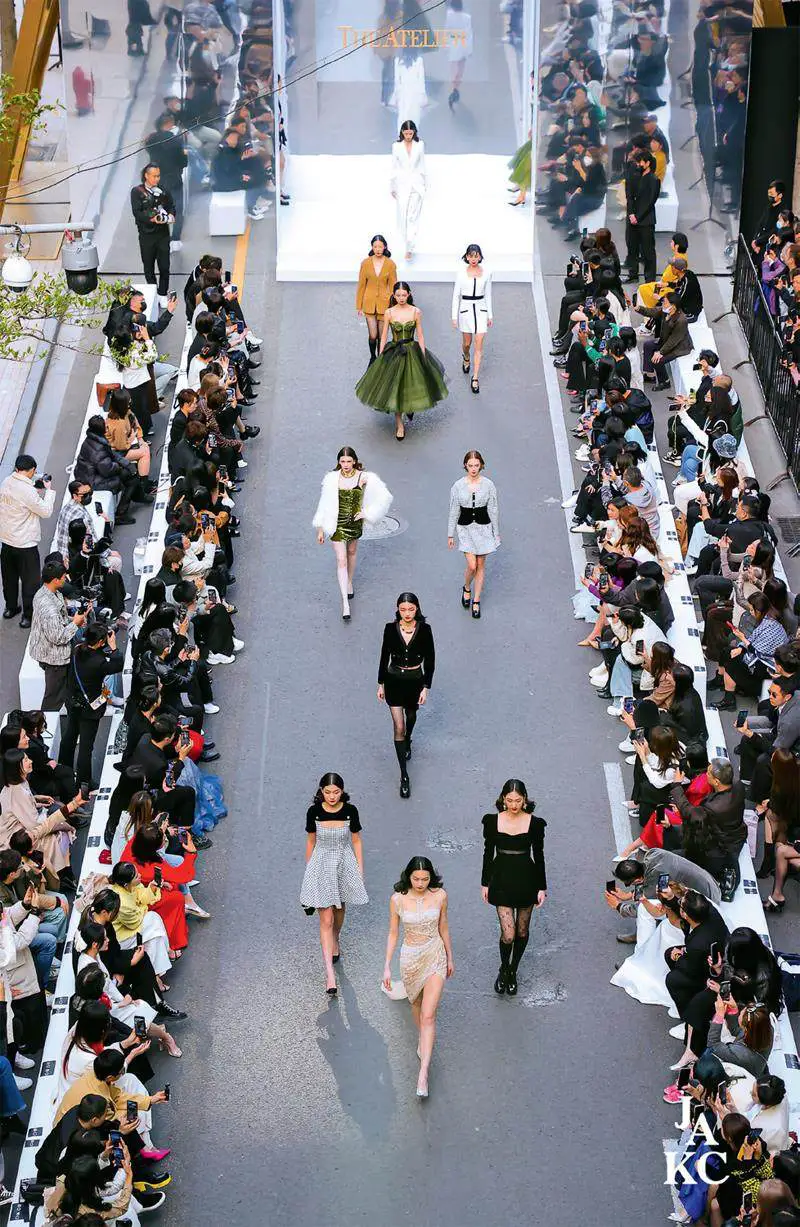 随着时代的发展和科技的进步,传统的T台模式已不再是时尚发布的唯一选择。当代秀场空间设计呈现出更加多元化和创新性的趋势,设计师们不断探索新的空间形式和技术手段,为观众带来更具冲击力和沉浸感的时尚体验。例如,在GRACE CHEN《茶韵清欢·宋词心境》高定时装秀便巧妙地利用了郡王府这一历史悠久的场地来增强其文化意蕴。模特们身着该系列,穿梭于郡王府前广场的亭台水榭、曲径通幽之间,古典的茶文化与现代时装风格在此碰撞融合,构成了一幅流动着的、充满东方文化意韵的画卷。此外,一些品牌也积极探索其他的非传统T台模式,如“例外”品牌在部分系列发布中采用环形T台,使得观众能够更近距离、多角度地欣赏服装的细节,更符合品牌追求的自然、内敛的风格。还有设计师尝试更具概念性的空间布局,将服装与特定的艺术装置融为一体,引发观众更深层次的思考。