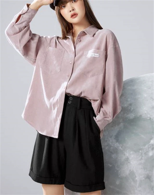 裸色系衬衫搭配灰色宽松西装,特别好看,没有传统职业装的拘束感,带点休闲正式的气息,简约有型。下身的可以搭配短裤和裤袜单鞋,显瘦好看。