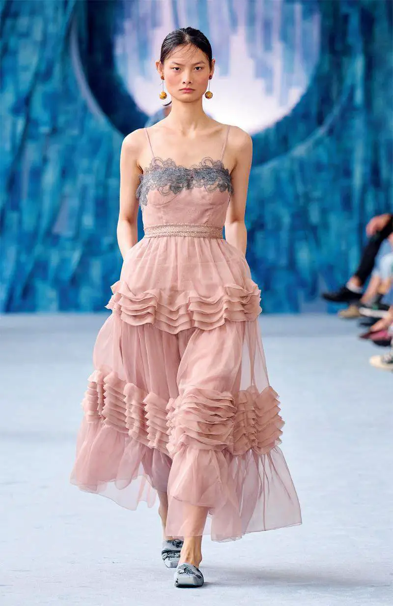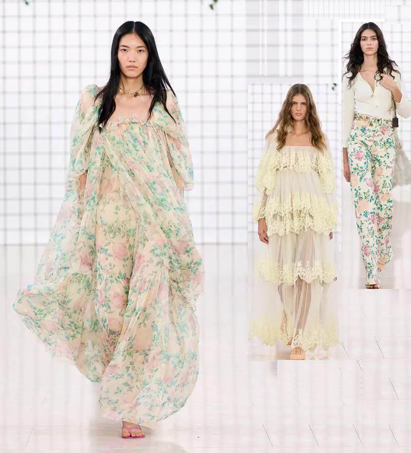 时至今日,浪漫主义风格在浅春系的影响下,告别了过去的色彩与奔放,也挣脱了复古风的夸张与华丽,转而以柔和的色彩、飘逸的线条和细腻的细节为基调,营造一种带有春天氛围的轻松与舒适。