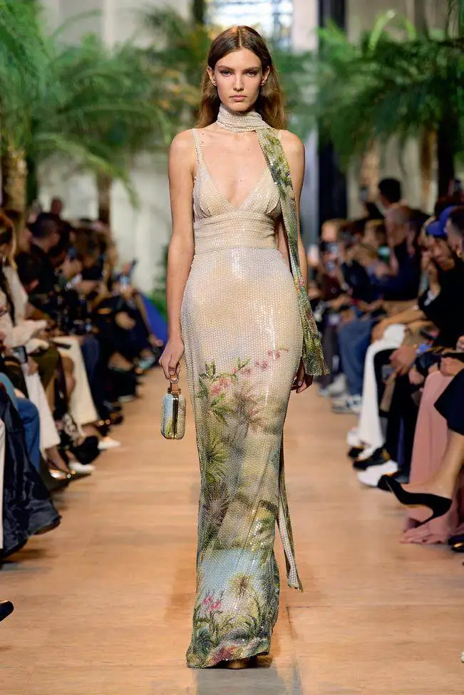 1.从秀场走向日常穿搭,极致花卉风格有着多样的呈现方式。其中,繁简结合始终是不变的黄金法则。可以选择简约的基础款上衣,比如一件白色T恤,或是修身的黑色衬衫,下身则搭配带有花卉图案,或者设计繁复的下装。像是一条大裙摆的花卉半身裙,灵动飘逸;又或是有着精致花卉刺绣的阔腿裤,随性洒脱。如此搭配,既能有效平衡整体的视觉重心,避免穿搭风格显得过于浮夸,又能够彰显出穿着者独特的时尚风格,将随性与奔放的气质巧妙地融合在一起。