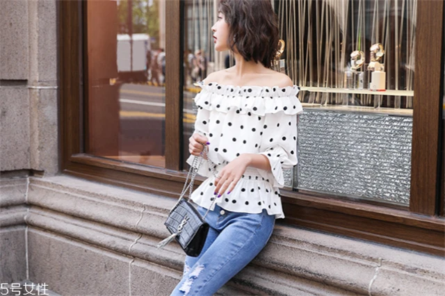 这款上衣精选了舒适的雪纺面料,丝毫没有夏季的烦热感觉,系带露肩设计,展现迷人的香肩,衣身是点缀波点的图案,散发动人魅力,着实气质满分。