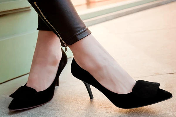 1、买软高跟鞋:在买高跟鞋的时候,可以选择真皮的高跟鞋,因为这些皮面料不想PU皮质地那么硬。软皮高跟鞋可以有效防止脚趾长茧。