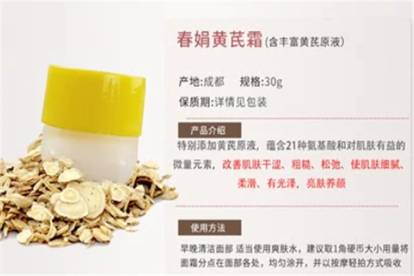 春娟黄芪霜喜欢它补水保湿的效果,与肌肤融合度高吸收的快,每次涂抹一小会就干了,不会说黏糊糊的在脸上,无法涂抹底妆,大大节省我的化妆时间,21种微量元素发酵而成天然无添加的,长期用也是可以的,帮肌肤补水保湿的同时还能改善面部发黄。以后终于不用为自己的肌肤问题烦恼了,大品牌就是不一样绝了!这个面霜也就几十块钱,真的是国货之光的那种。