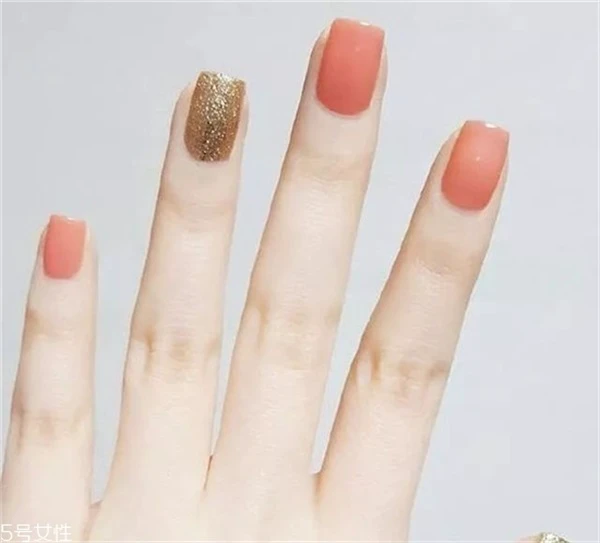淡淡的橙色美甲是真的非常好看,跳一个金色的美甲,使得整个美甲显得没有那么单调。