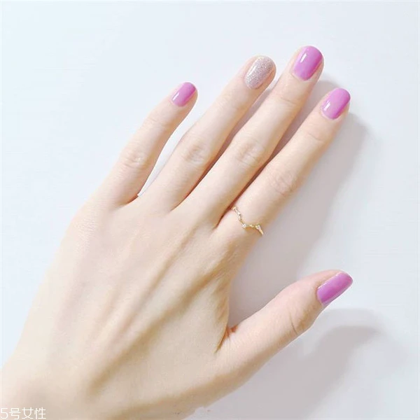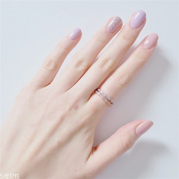 在其他指甲也按照之前步骤涂抹,可以在中指保留原有的粉色指甲油,这样不会太繁琐。完成后萌萌的,粉嫩的几何拼接让你少女一回。